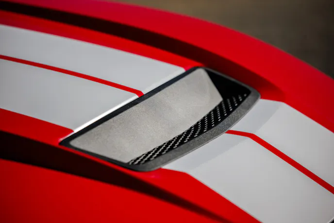 “We increased horsepower by almost 70 percent, tuned the suspension, opened up the exhaust, smoothed the aerodynamics, and gave it more sex appeal,” said Vince LaViolette, Vice President of Operations and Senior Designer at Shelby American. “The styling is based on functionality, giving the Shelby GT350 a purposeful look. However, the suspension is still supple enough to drive every day without sacrificing comfort.”