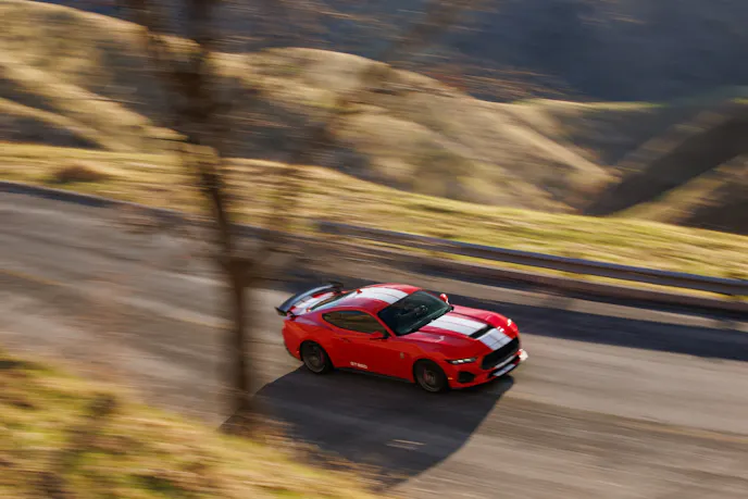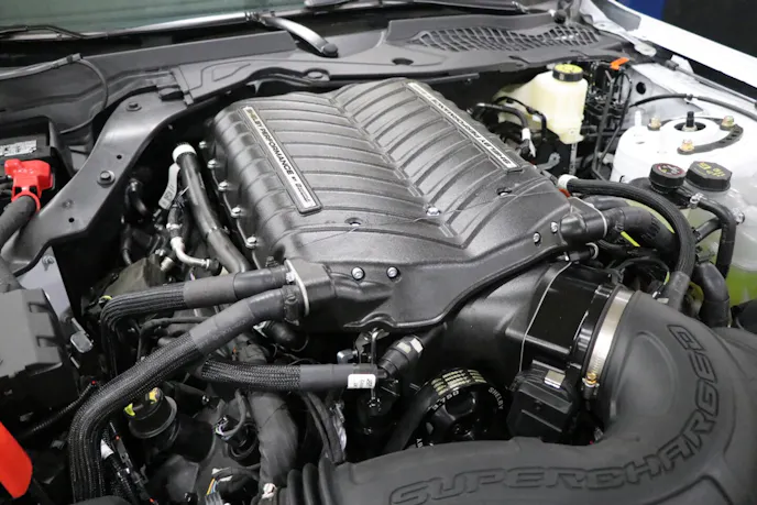 Unlike the most recent factory GT350 offerings there is no flat-plane crank or unique engine variant. Instead, the 2025 Shelby GT500 is available with either a naturally aspirated, 480-horsepower Gen 4 Coyote 5.0-liter or the same engine topped by a Shelby Performance/Whipple twin-screw supercharger that elevates its output to a brawny 810 horsepower.