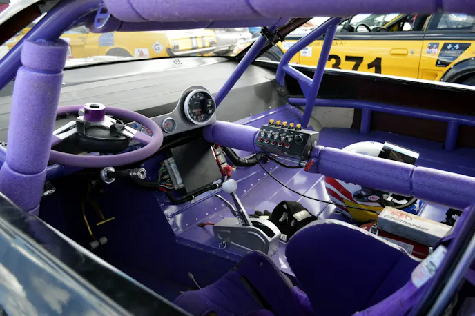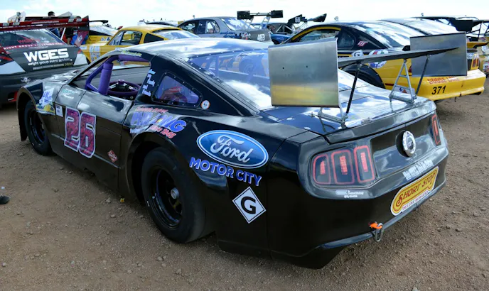 As far as the look and feel of the car go, the fiberglass Mustang body is of the 2014 variety from Howes Racing. Atop the body is a glossy PPG Midnight Black paint scheme that Schmidt laid himself before adorning the car with sponsorship graphics. Fittingly, Schmidt named his car Midnight.