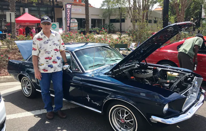 His club sponsors Rumble on the River in downtown Jacksonville, which supports a national organization that cares for, adopts, and sells wild Mustangs. Sean, who admits the Mustang, is his baby and here to stay.