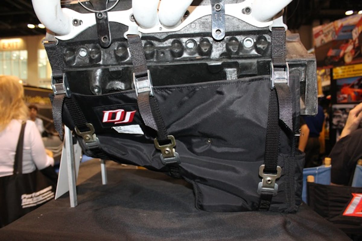 What makes DJ Safety’s engine containment devices unique is that they are hand crafted for each engine application. There are a couple of different mounting options for the devices, either header or frame mount, and they are SFI rated.