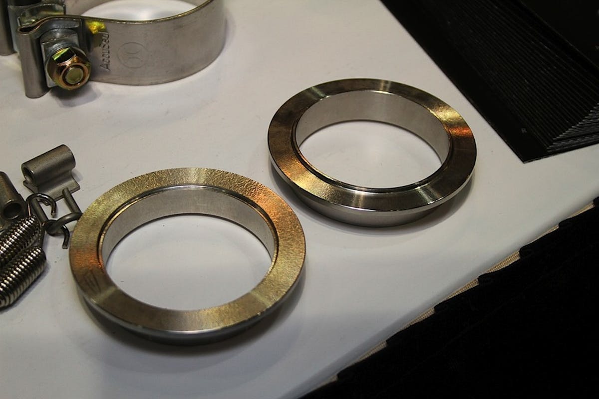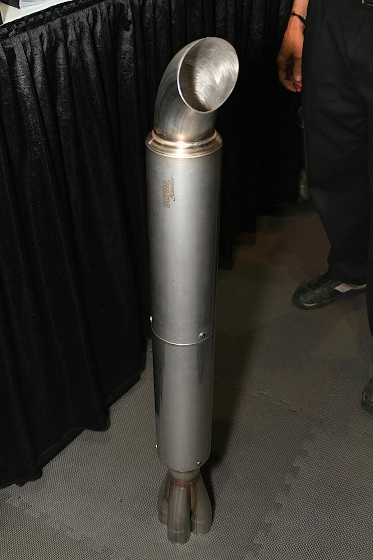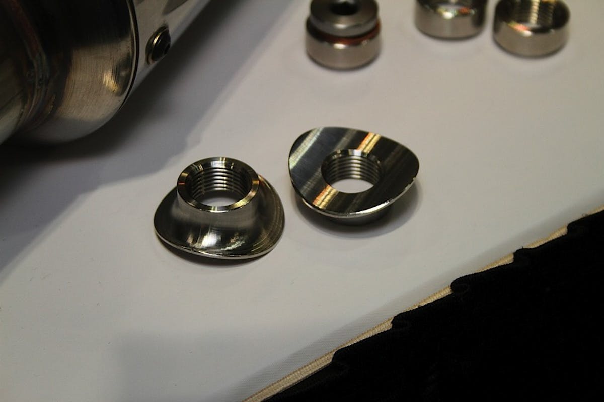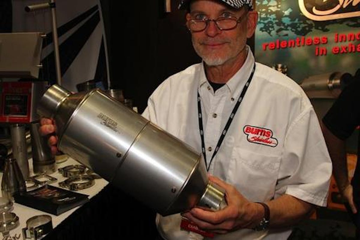 We always love to visit Jack Burns, founder of Burns Stainless, at the PRI trade show, because within his humble 10 by 10 booth we always find all sorts of shiny toys. This year was no exception – his display was full of things both big and small that will make life easier for the exhaust fabricator. The big items this year were the redesigned 2-stage muffler and collector side-pipe muffler, but there were also a lot of smaller odds and ends that show the clear influence of people who actually build things for a living in their design.