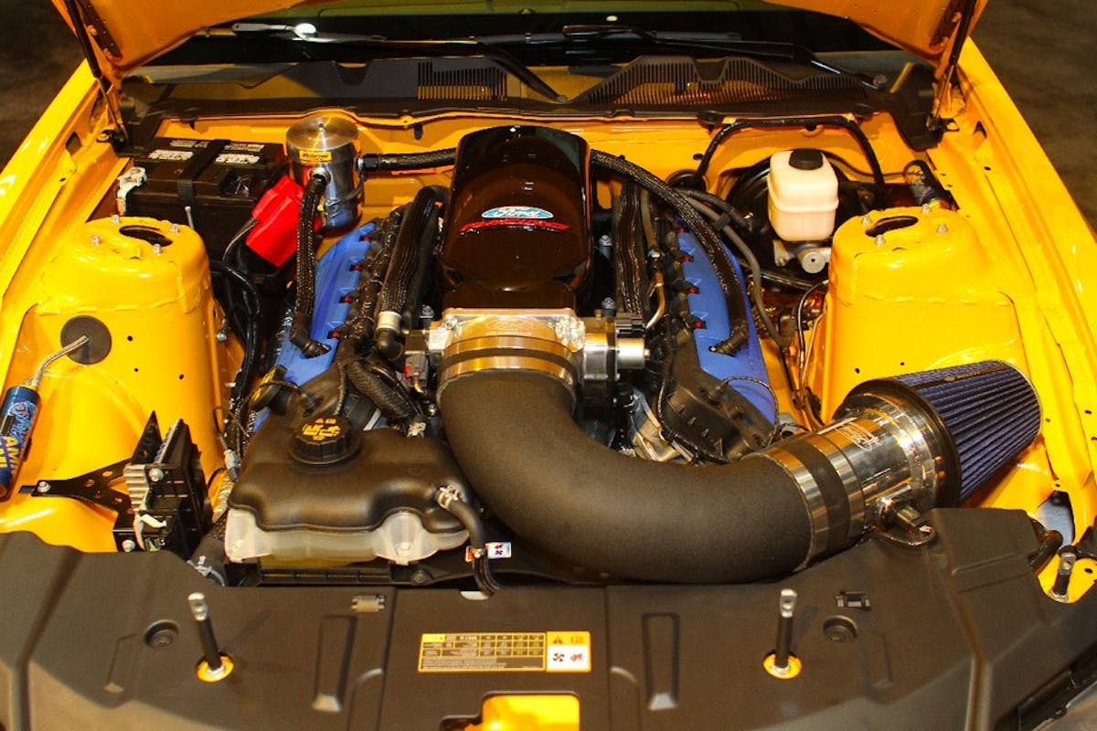 Terry “Beefcake Reeves bolted a ProCharger F-1A94 to his Dark Horse. It recently became the first 8-second centrifugally supercharged S650.