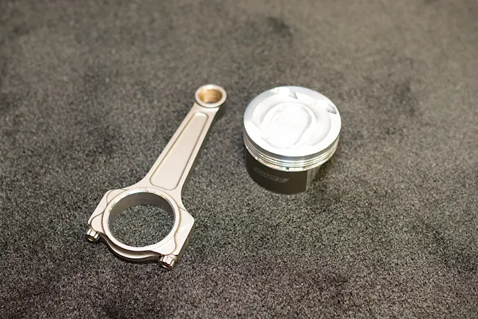 cp-e was also showing off their new forged rods and pistons, which are being produced by Manley, and will be available through cp-e soon. The prototypes for those parts were installed on the display engine at the show, and there were a few available for viewing as well.cp-e developed a special manifold for the ST, all EcoBoost four-cylinders, use an integrated manifold design on the cylinder head, the exhaust merge is built to the cylinder head, and fed to the turbo. There is a bolt on flange, that acts as a manifold to the turbo. cp-e’s version is made from 304 cast stainless steel. It features and oversized opening on the cylinder head side, so that if owners decide to have some cylinder head porting done to increase exhaust flow, the part should match.