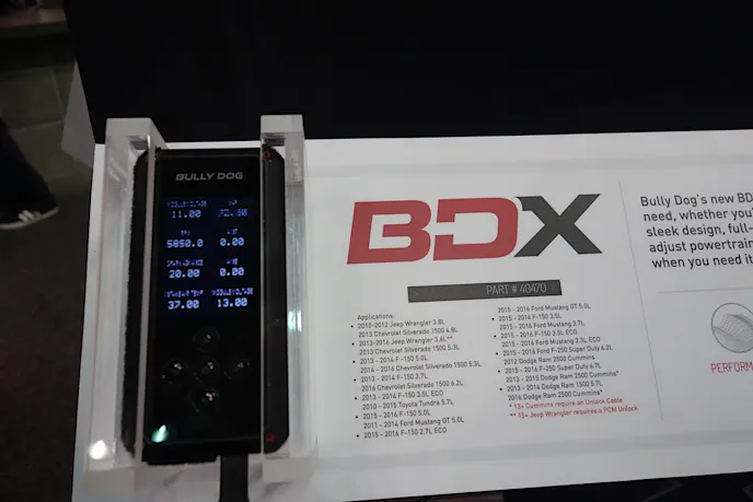 Adam Gloe of Bully Dog gave us a rundown of the company’s latest tuning capabilities for diesel trucks and off road vehicles, as well as EcoBoost powered cars and trucks. “The Bully Dog Big Rig (PN 40470) is based on a current platform. It’s a medium duty component, and we tested it in a multitude of medium duty scenarios–such as service and delivery trucks. This device is available now, and it’s based off of the SCT X4 platform.”