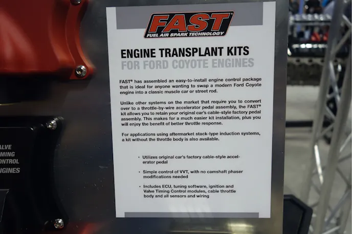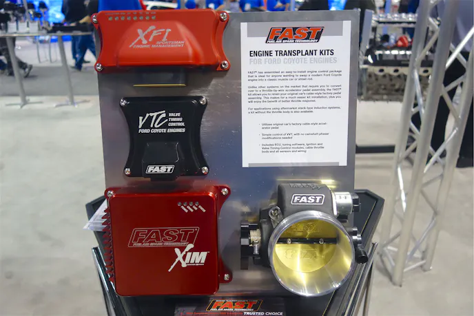 FAST released a pair of new XFI Engine Transplant Kits For Ford Coyote Engines that incorporate control of the engine’s variable cam timing.