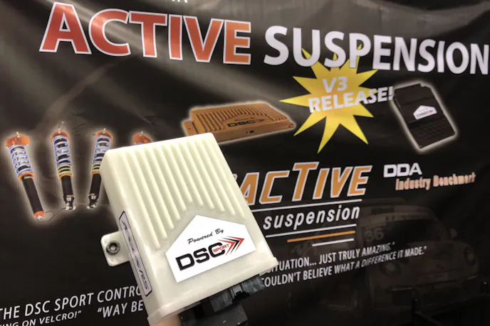 “We manufacture plug-and-play controllers for cars that come from the factory with electronic suspensions,” Tom Chan, Sales Manager at DSC Sport, explained. “Our box is a direct plug-in to replace the factory controller using the CAN bus data, including brake pressure, throttle position, and g-force. If the car is equipped with a ride-height sensor, we use the rate of change data to determine velocity and that is also part of the tuning algorithm.”