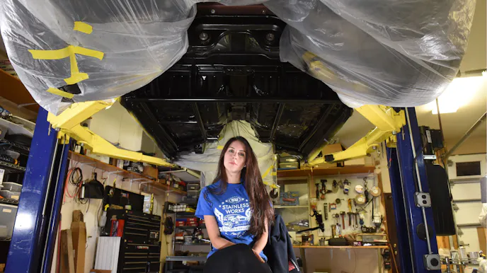 “After SEMA, the build began in earnest,” she explained. “We did a bunch of prep, sanding, grinding, filling the holes in the firewall. We painted the car, exterior, engine bay, and interior. Dave Tucci at Tucci Hotrods sent us one of his awesome drag wings, and I borrowed some Weld wheels for the show, but I will be going to a set of beadlocks.”