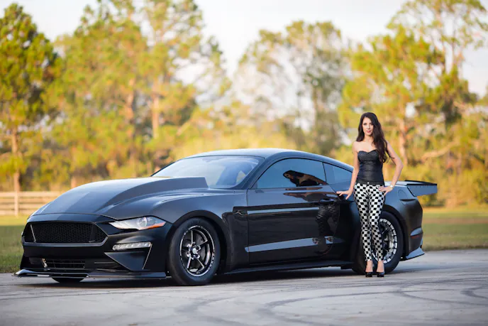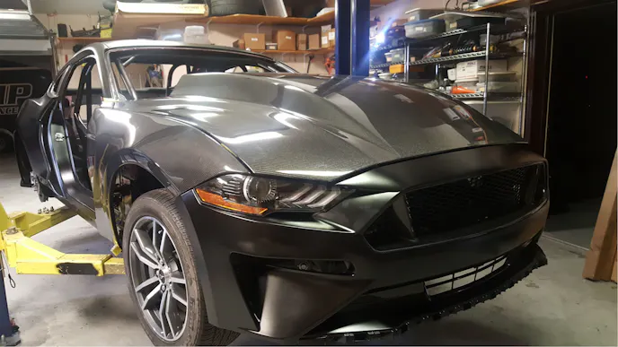 We could update it with an ’18 front bumper, fascia, headlights, hood, and rear bumper. — Rebecca Starkey, VMP Performance“It began its life as a Ruby Red base model with a Coyote and MT-82,” Rebecca said of her 2015 turned 2018 Mustang. “Shortly after we bought it, it got a 25.3 cage. At that point, we started weight reduction — cutting out spot welds, removing sound deadening, and just getting the car ready to be super light.”
