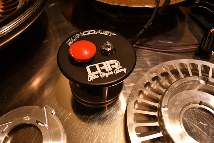 The Suncoast Performance transmission controller allows you to preload the drivetrain, eliminating the hard stress and potential failure when launching. This also keeps the car from spinning while trying to climb to the correct RPM. The controller also utilizes a fast release, so you won’t be left waiting on the transmission delay when the brake is released. The Suncoast Performance launch controller can also be used as a line lock in the water box.