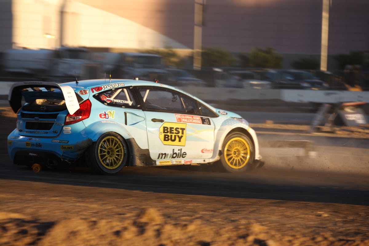 Foust helped seal his title by taking a win in the first and second round of heats, which set him up in the No. 2 starting position for the main event. Fellow Ford driver Ken Block was off the line first in the main event and led until the eighth of 10 laps, when Foust took the inside corner on turn one to take the lead. Block then parked his car just before taking the jump after his car caught on fire, and the field was forced to take a full restart.
