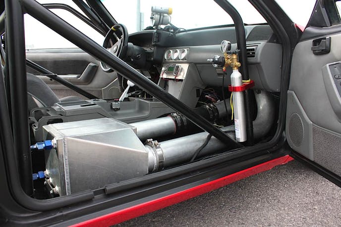 We pressed Dan about the actual numbers, but he said, “Let’s just call it close to 1,100 hp.” He credits Greg Monroe over at Racers Edge Tuning for getting the mod motor’s tune just right. But he did tell us that he relies on an AMS 1000 boost controller to help him dial in the amount of PSI that he requires.