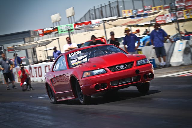 Now, twenty years after her diagnosis, Sandi and her husband John have embarked on their loftiest racing venture yet, entering the wild world of Xtreeme Drag Radial in the Pacific Street Car Association with their turbocharged Mustang that’s already run well into the seven-second zone. The Wolds’ 2000 Ford Mustang GT is a highly-engineered, purpose-built racing machine today, but like many race cars terrorizing the quarter mile, it’s beginnings are traced right back to the showroom floor.