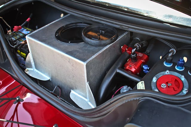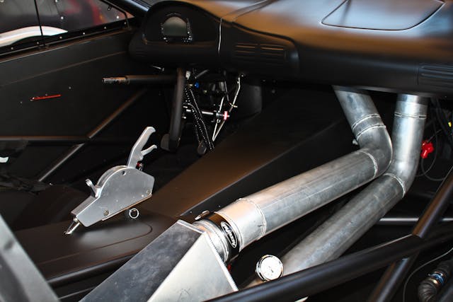 After receiving the engine from Mihovetz and spending some six weeks getting everything wired and plumbed, John and Sandi decided the car they had simply wasn’t up to par for the kind of horsepower they were about to throw at it, and per an earlier agreed upon stipulation from Mihovetz, it was decided that it was time to put the once daily driver under the knife. That’s when Mihovetz referred them to Robbie Miller, who spent about 18 months beginning in November of 2009 bringing the car up to seven-second standards with a complete certified cage and chassis, suspension, wheel tubs, and other race-minded elements. Once complete, the chassis, interior, and engine bay were all powdercoated, finishing off what was an immaculate new piece.
