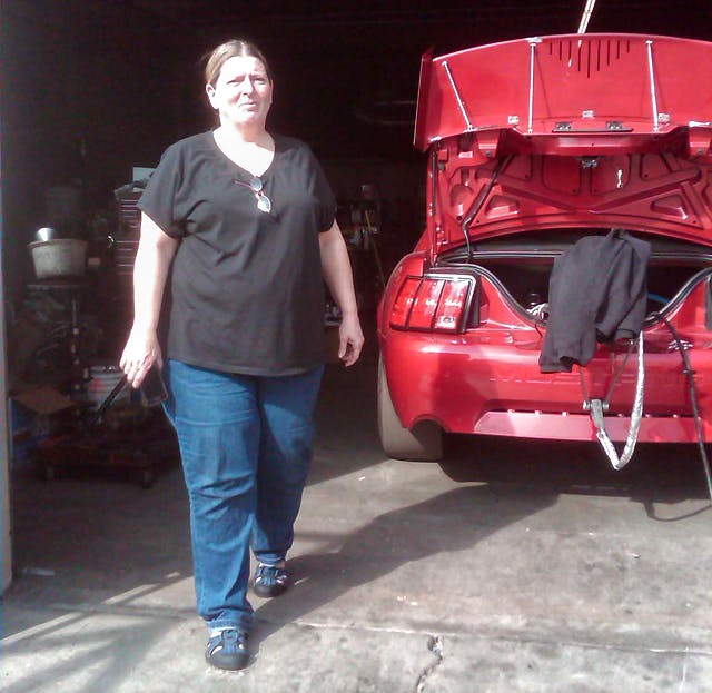 While Sandi handles the duties of driving the Mustang, John performs all the maintenance on the car and even gets in a little racing of his own with his ’03 Ford Lightning pickup.