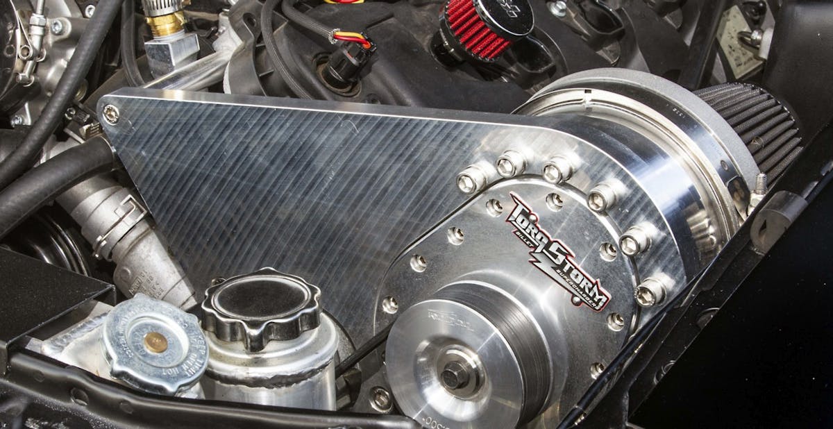 Even with a roll cage, the car weighs just 2,900 pounds, which means with a Coyote engine, the power-to-weight ratio is phenomenal. But Scott wanted more. More came in the shape of a TorqStorm billet supercharger. This put power output in the ludicrous range, especially in a short-wheelbase chassis. “Before we added the supercharger, we found 460 horsepower after some tuning,” said Scott. “With the TorqStorm supercharger, we have found 657 horsepower with 10 pounds of boost. We know we can change the pulley by a 1/4-inch and get more boost and more power, but we want reliability with the car.”