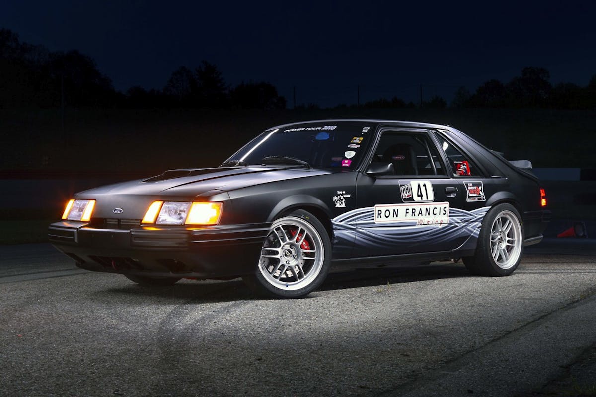 Back in the day, the turbo engine put out between 175 and 200 horsepower, which was solid in 1984, but doesn’t hold a candle to horsepower numbers in 2021. Scott, who owns Ron Francis Wiring, decided he wanted a project car that could display some of the products Ron Francis Wiring creates. One of the kits they make is a Coyote swap fuel injection harness. That meant out with the turbo engine and in with a 5.0 Coyote.