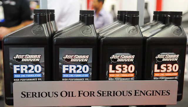 Here at SEMA, Joe Gibbs Driven Motor Oils is showcasing new high performance oils designed for use in two of the hottest cars on the road and certainly the two hottest here at SEMA: the new 2011-12 Ford Mustang and the fifth-generation V8 Chevrolet Camaro.