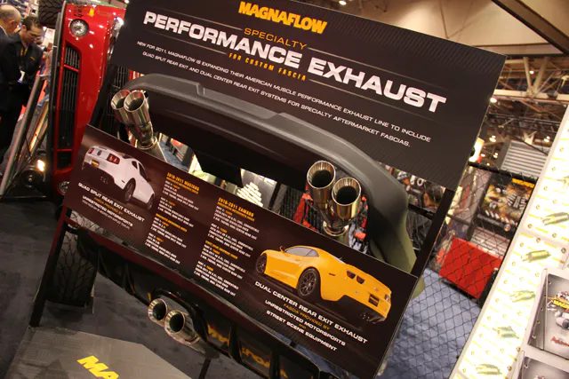Magnaflow has also made a major move for the up coming year by producing quad split rear exit and dual center exit systems for specialty aftermarket fascias. This line of exhaust systems for late model vehicles will most certainly include ’10-11 Camaros and Mustangs. The American Muscle line will cover V6 and V8 editions of both vehicles, too.