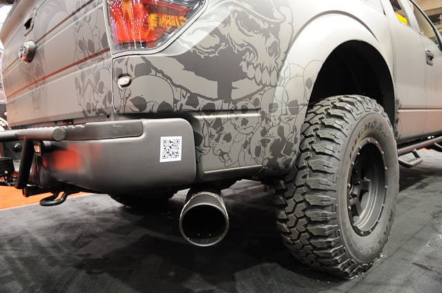 This stainless steel, made in the USA system is designed to deliver an incredible amount of sound for pickup trucks from Chevrolet/GMC, Dodge, Nissan, Toyota, and Fords, such as the Deegan-owned F-150 SVT Raptor pickup displayed in the Gibson booth.
