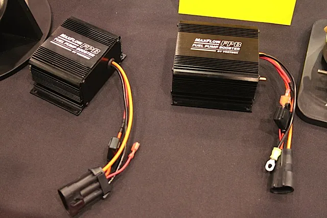 The MaxFlow FPB is a way to increase the capacity of a stock in-tank fuel pump under high demand conditions, eliminating the need for a high capacity external pump for many boosted applications. The FPB can increase capacity by as much as 50%, and utilizes an advanced microprocessor to control output voltage to the pump.