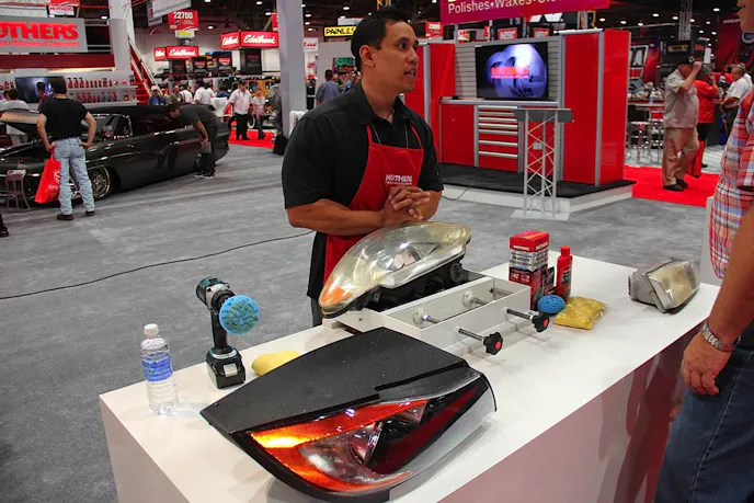 This year, we were blown away while passing by the Mother’s booth. While their booth was filled with lots of polishes, waxes and free in-house live demonstrations, it was the ’56 Ford 427 “Suncammer” that drew us in.