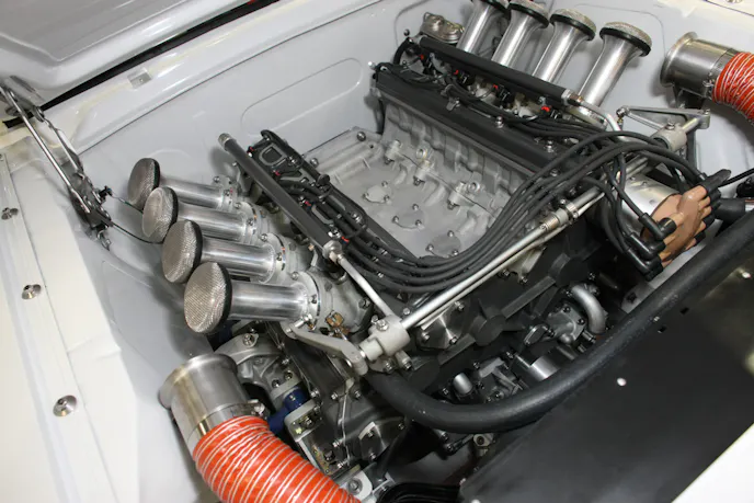 “We were actually looking at a different engine when we went down to Ed Pink Racing Engines and we determined the engine we were looking at wasn’t going to work for a street car,” said Peter Harksell III. “The guys over there pointed to the corner and said ‘hey, have you thought about one of these Ford Indy engines, we have three of them’ so that’s the route we took.”