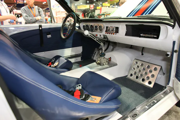 Pure Vision’s Martini Mustang is about pure speed, which is why it includes a Shelby rollbar, big Wilwood brakes, a Detroit Speed suspension, and one-off wheels. “The full suspension of this car is Detroit Speed’s brand new first generation Mustang parts and this is the first set to come off the production line,” said Harksell III. “The front is a Corvette style front suspension with a four-link rear.”