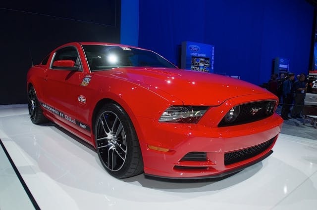 This 2013 Mustang wasn’t just a base model GT though, the car was tricked out with a host of speed and performance enhancements from Edelbrock and Ford Racing Parts. The foundation of this was an Edelbrock E-Force supercharger package, part number 1588, which produces 559 hp, and 503 ft-lbs at the flywheel. The car also had the Ford Racing Brembo brake package with upgraded wheels, and a Ford Racing handling pack and other parts installed. Of course this being an Edelbrock Mustang it has to be red.