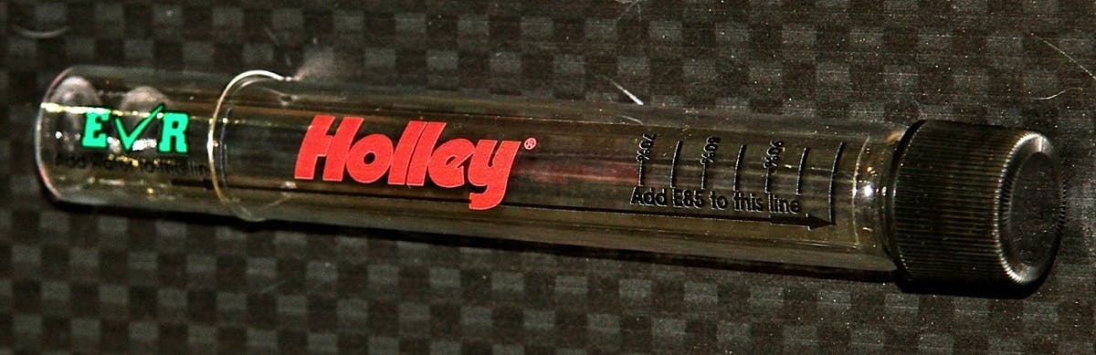 Finally, Holley offers an E85 checker to determine the level of ethanol content in the fuel. Depending on the region and time of year, E85 pump fuel can be diluted.