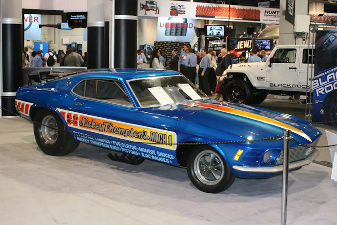 Also on display in the company’s booth was Mickey Thompson’s 1969 Mach 1 Funny Car driven by Danny Ongias, one of the most popular vehicles of its day in drag racing, and a grand piece of motorsports history. It was very popular among show attendees this year.