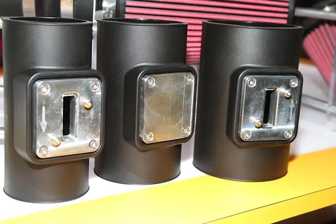 This year at SEMA we got a look at some new additions to the line that are essential for any EFI intake – Airaid’s MAF adapters. Available in 3-, 3.5-, and 4-inch sizes, the adapters can be ordered up with Hitachi or Denso MAF mounts, which cover the majority of OEM EFI applications, or with a blank plate that can be machined for your custom application.