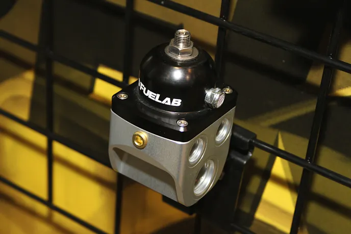 Fuel delivery is a science, and FueLab sees it in that light. For carbureted engines with a big thirst, they’ve introduced a new four-port blocking-style (non-return) fuel pressure regulator that features dual -10 inlet ports, four -6 outlet ports with spacing wide enough to accommodate -8 line, and a quick-change main seat assembly.