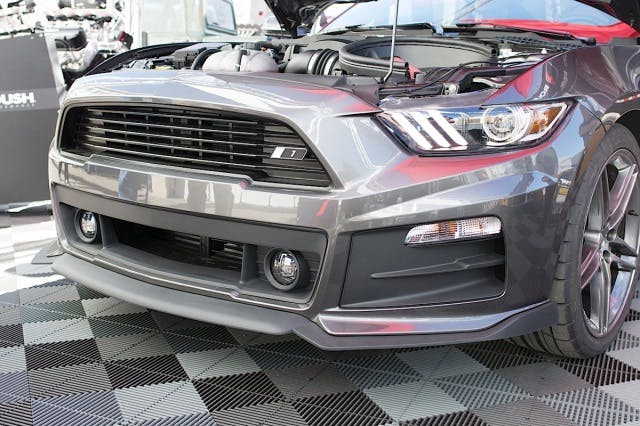 ROUSH was also showing off their new body kit and line of parts for the S550 platform. These parts are made in the USA, at the company’s Livonia, Michigan facility.The Stage 1 package, which is what we were able to see, features a more aggressive hood and front lower splitter/bmper cover. Sail planes on the sides, as well as a new spoiler located at the rear of the car.