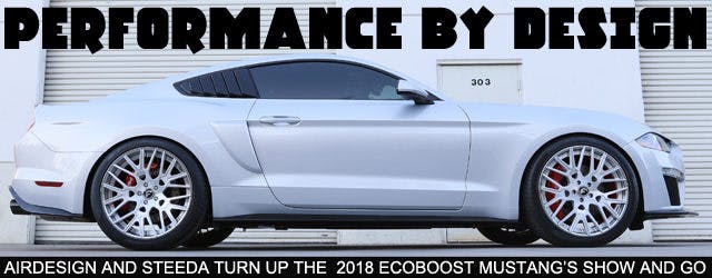 Speaking of performance and driveability, the Airdesign/Steeda 2018 EcoBoost Mustang is equipped with the latter company’s induction upgrade. This free-flowing unit will improve power without any electronic tomfoolery.