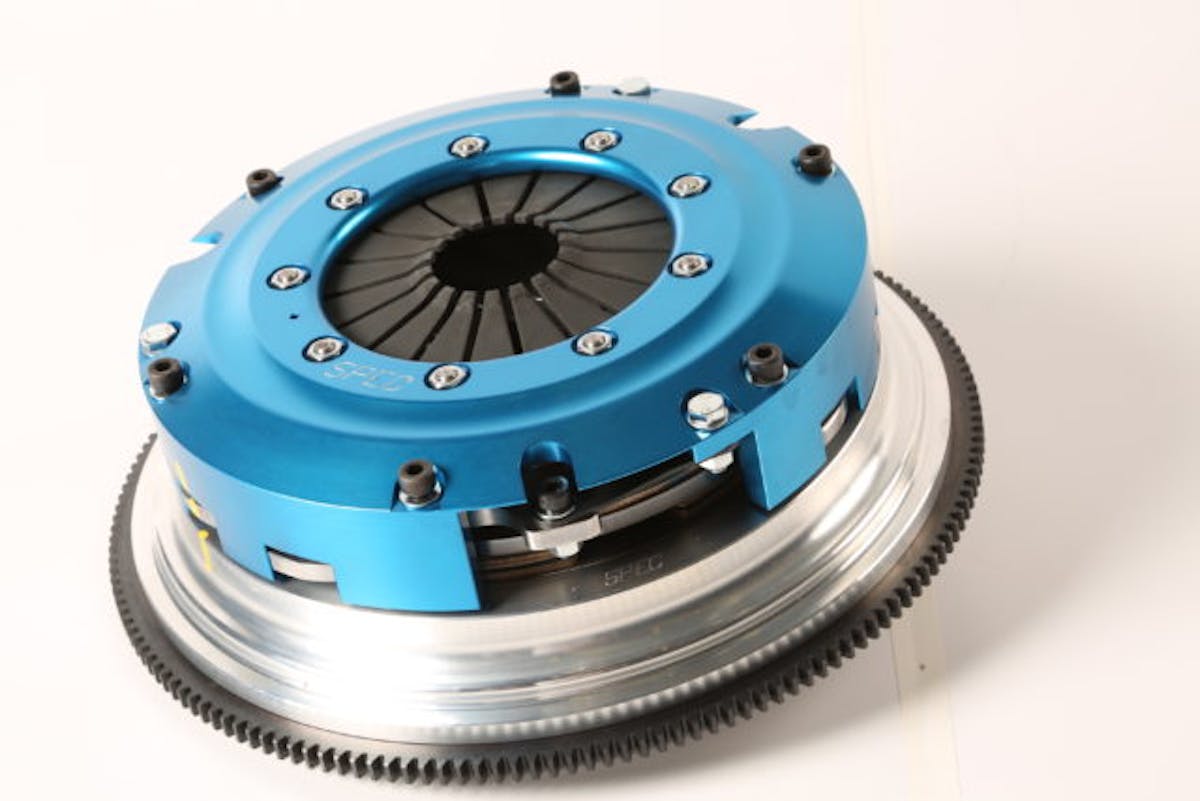 SPEC offers a wide variety of performance clutch upgrades, including those with a factory-style racheting mechanism, a non-racheting version, and a lightweight flywheel. In a streetable configuration, the SPEC clutches can transfer 671 lb-ft of torque, while a more aggressive clutch can take as much as 820 lb-ft of torque.
