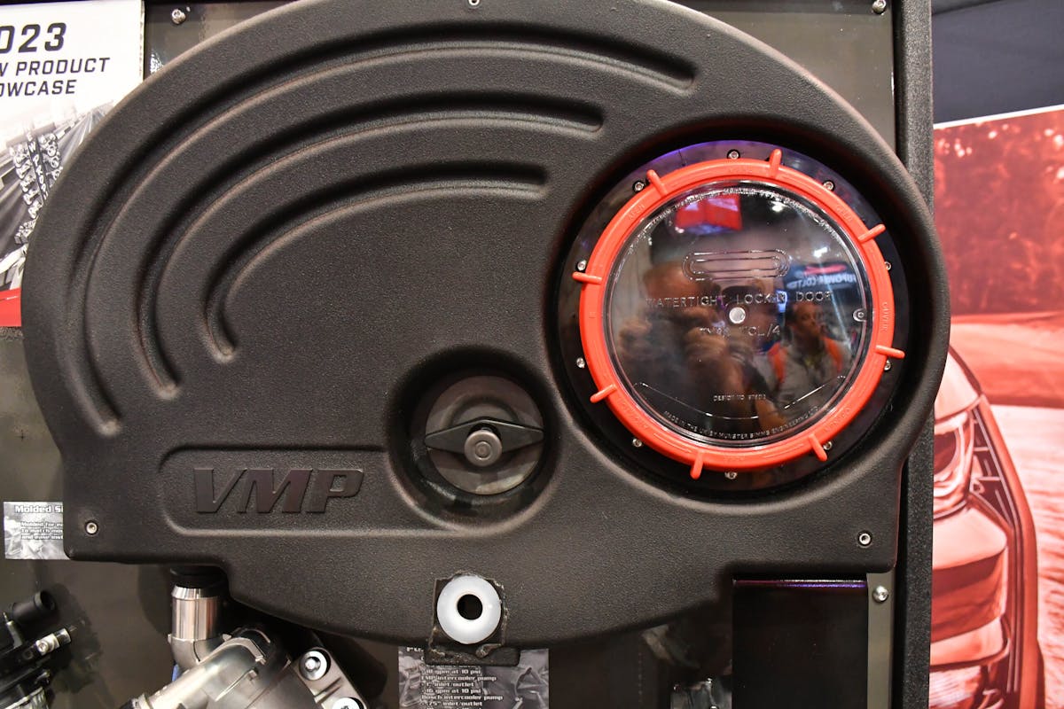The newly introduced VMP Performance rotomolded ice tank, boasting a 7-gallon capacity, not only offers five optional custom mounting points but also includes brackets compatible with Cmax, EMP, factory GT500, and Bosch-style pumps, ensuring a straightforward drop-in solution for end-users. The tank allows for pump placement on either the passenger or driver’s side, catering to individual preferences.