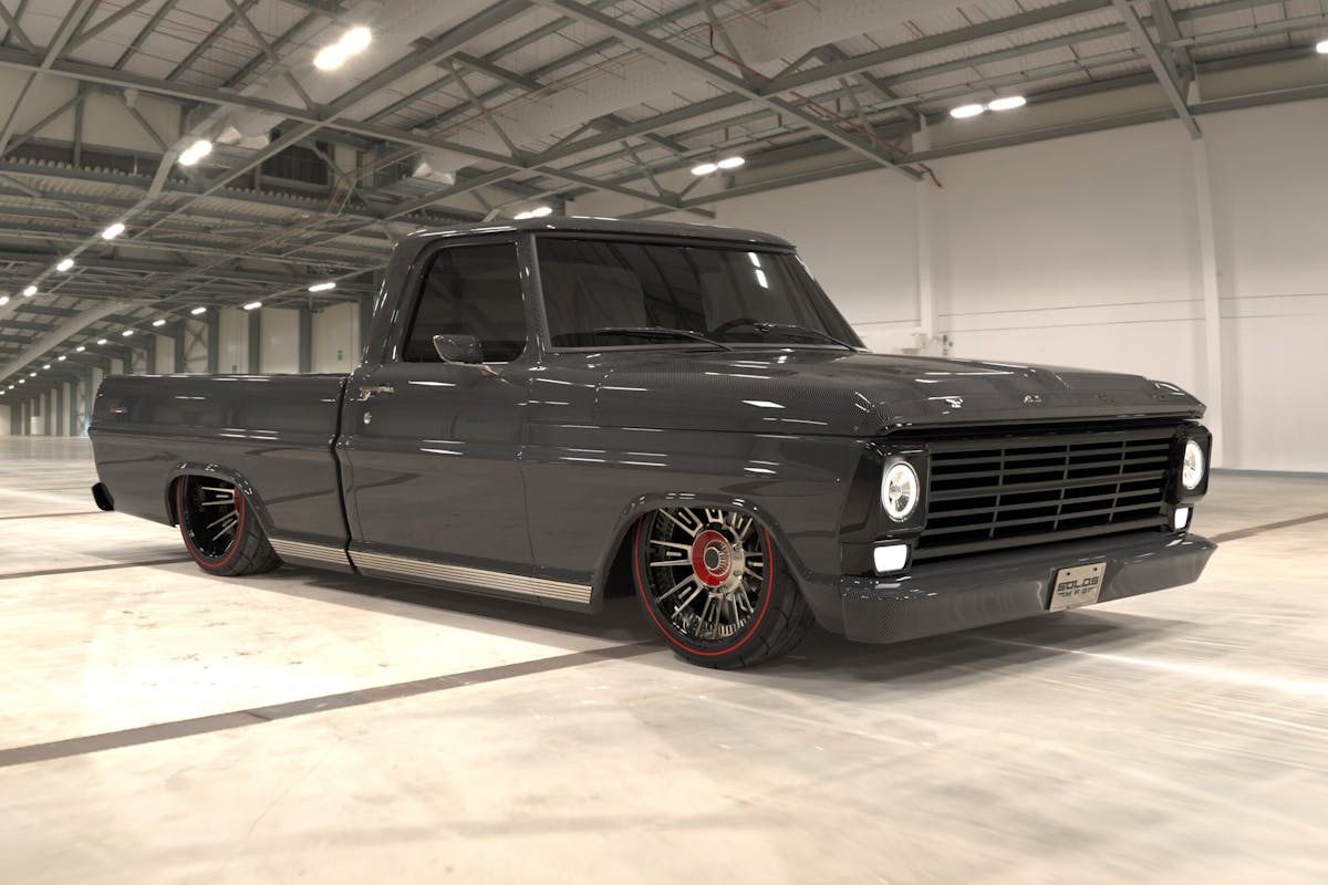 Part of that recipe was the build of a 1970 Ford F-250 dubbed “Gold Dust,” which Solomon revitalized as a diesel-powered, patina’d truck. More recently, he constructed a Godzilla-powered 1979 Ford F-150 Ranger XLT 4×4 shortbed that delivered 700 modern horsepower in a classic package. This year at the SEMA Show, he revealed what is likely his most ambitious project yet — Clyde, an all-carbon-fiber 1969 Ford F-100 propelled by the powerplant from Ford’s fiercest modern pickups.