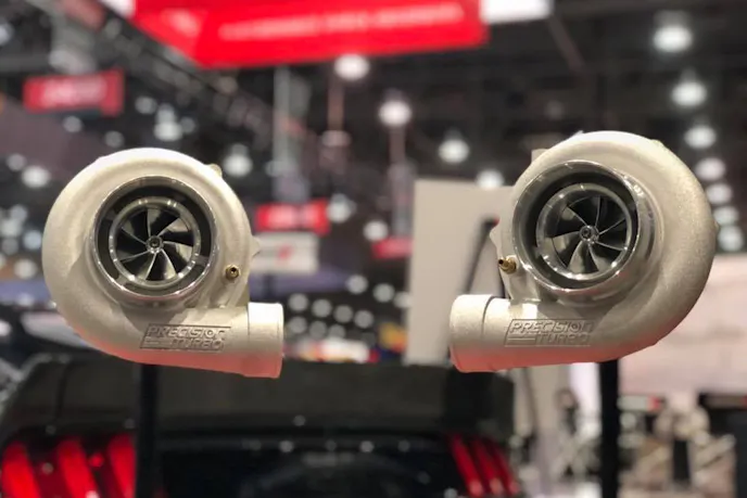 If your next build requires keeping the engine bay symmetrical, the company also debuted the new Precision Turbo Mirror-Image turbo setup. The turbos are available in 62/66, 64/66, and 76/75 sizes and feature Gen 2 aerodynamics. The mirror image turbos are a universal fit and can be installed on a variety of late model performance vehicles.