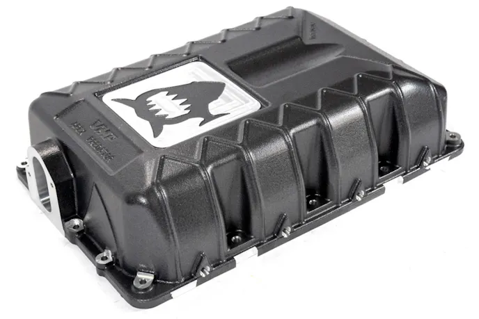 While VMP Performance designed its new Apex Predator Supercharger Lid Upgrade with functionality in mind, the new lid can fit over a variety of intercoolers, including the stock intercooler, VMP’s 81mm Race Intercooler, and the upcoming Apex Intercooler Upgrade. The lid fits under the stock strut-tower brace and allows owners to choose between the Apex Predator shark or OEM supercharger plaque. If you’re a nitrous or methanol injection lover, the lid features eight 1/8-inch NPT locations to add direct spray into your engine.