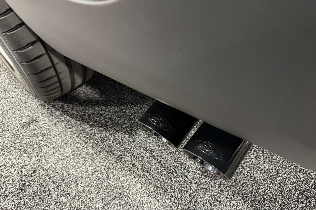 Under the hood, it’s spunky 2.0-liter EcoBoost engine muscled up to 300 horsepower and 317 lb-ft of torque courtesy of the larger turbocharger from the current EcoBoost Mustang, sporting a compressor wheel 6mm larger than the stock 53mm unit. With more boost headed for the engine, Ford Custom Garage improved charge cooling by installing a Mishimoto intercooler that is 58.8 percent larger than the factory unit, reducing air-charge temperatures 39.6 percent versus the factory unit and decreasing restriction by 20.1 percent. The more muscular combination is supported by a Borla exhaust and a Ford Performance Parts ProCal 4 calibration.