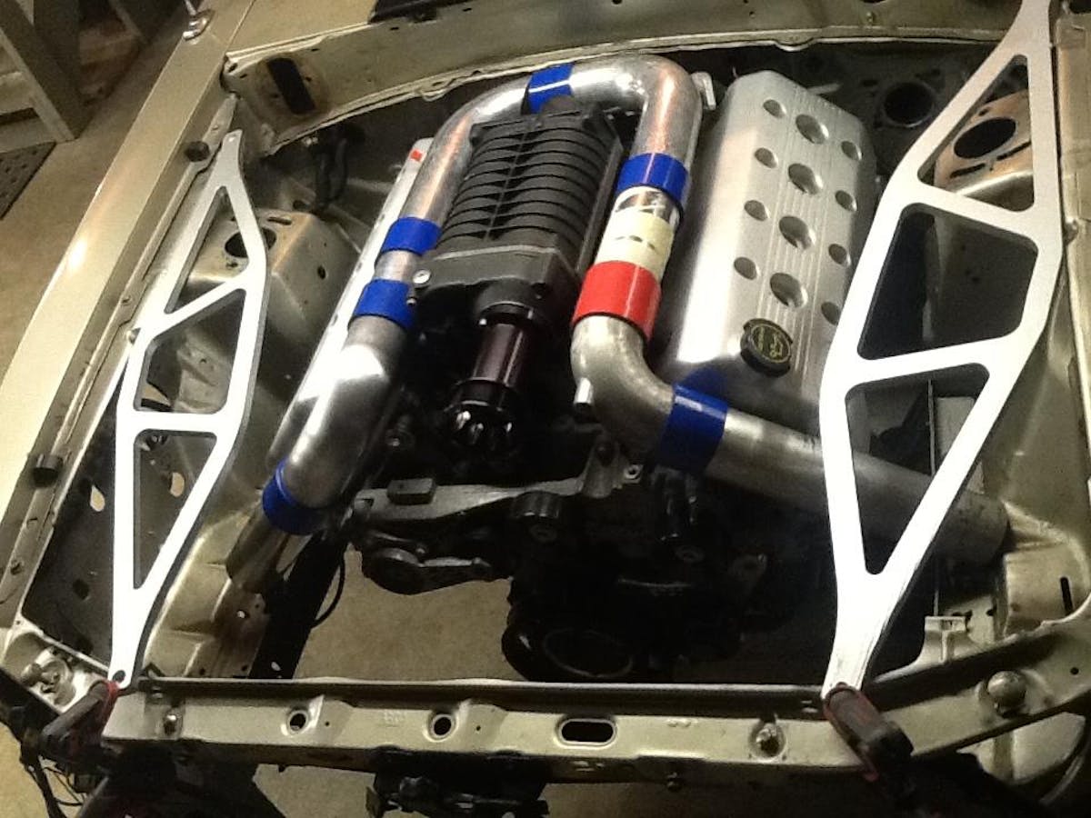 In place of the weak original V8, Clark has installed a Terminator Cobra engine, and upgraded it with a Whipple blower. It will all be controlled by a Megasquirt DIY Autotune system.
