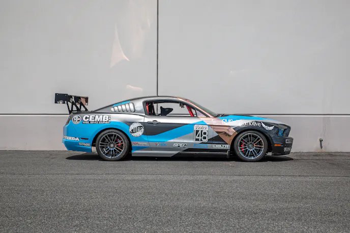 Annika visited Steeda earlier this year for two days of suspension overhauling. The Steeda parts installed included: a Steeda Stage 3 Competition Coilover Kit, Competition Mustang Adjustable Upper Strut Mounts, S197 Mustang Front Lower Control Arms with X11 Extended Ball Joints, X11 Mustang Extended Ball Joints, Bumpsteer Kit, Adjustable Mustang Upper Control Arm – Poly End, Mustang Upper Chassis Mount For 3rd Link, Hardcore Race S197 Mustang Adjustable Rear Lower Control Arms, and other odds and ends. The Mustang already had a front sway bar and end links as well as a rear Watts link kit, and is still powered by its original 3.7-liter “Cyclone” Ti-VCT V6 engine. It was originally paired to a 6-speed 6R80 automatic transmission, which has since been replaced by an MT-82 manual transmission with a short-throw shifter.