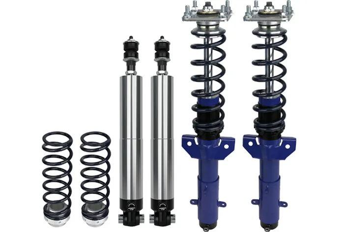 It fits 2005-2014 Mustang GT, Boss, or V6 applications and is built from billet aluminum in-house at Steeda. The parts are anodized for protection against oxidation, and feature roller bearings for easy adjustments. They are fully adjustable for shock valving and ride height down to a full 2-inch lower than stock.