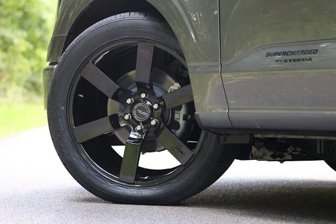- Velgen DDR VFT6 forged aluminum wheels with gloss black powdercoat finish (22×10-inch front and rear)
