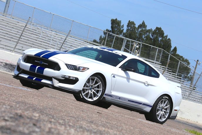 The touches are subtle, like the stripes crossing as an X on the trunk lid and the powdercoating on the wheels, which more closely resembles the finish on classic Shelby wheels.