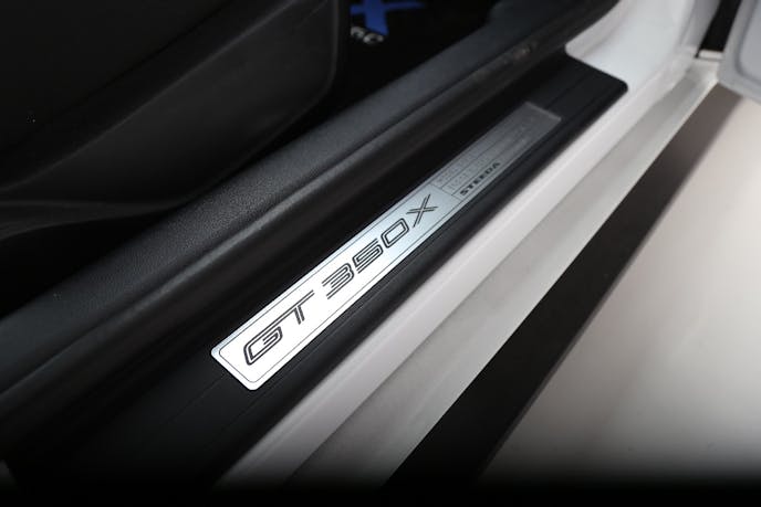 Inside, the GT350X is largely as produced by Ford, but it does feature logo’d floor mats, headrests, and door sill plates.