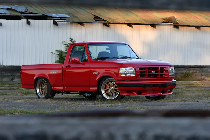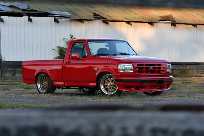 “My first Lightning when I enlisted was a red ’95, and it was stolen and totaled,” he explained. Both of the trucks in the deal, one red and one black, were ’93 models. The red one was a rolling chassis, while the black one needed a few small fixes to get it back up and running. Newman sold the latter to a good friend and began work on the red one in February of 2022.