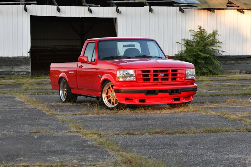 “My first Lightning when I enlisted was a red ’95, and it was stolen and totaled,” he explained. Both of the trucks in the deal, one red and one black, were ’93 models. The red one was a rolling chassis, while the black one needed a few small fixes to get it back up and running. Newman sold the latter to a good friend and began work on the red one in February of 2022.
