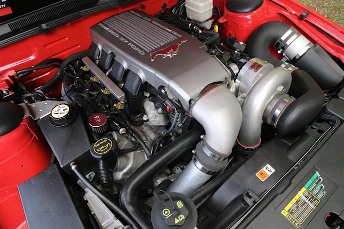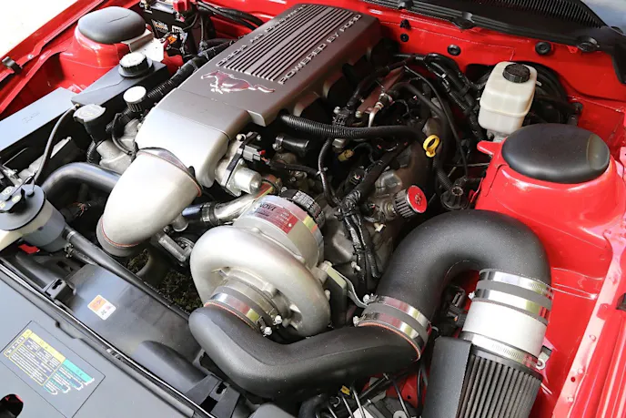 That included the stock camshafts, intake manifold, cylinder heads, valve-train assembly, and complete rotating assembly. Brent and Chad, quite literally, bolted a massive blower onto a stock Three-Valve Mustang.